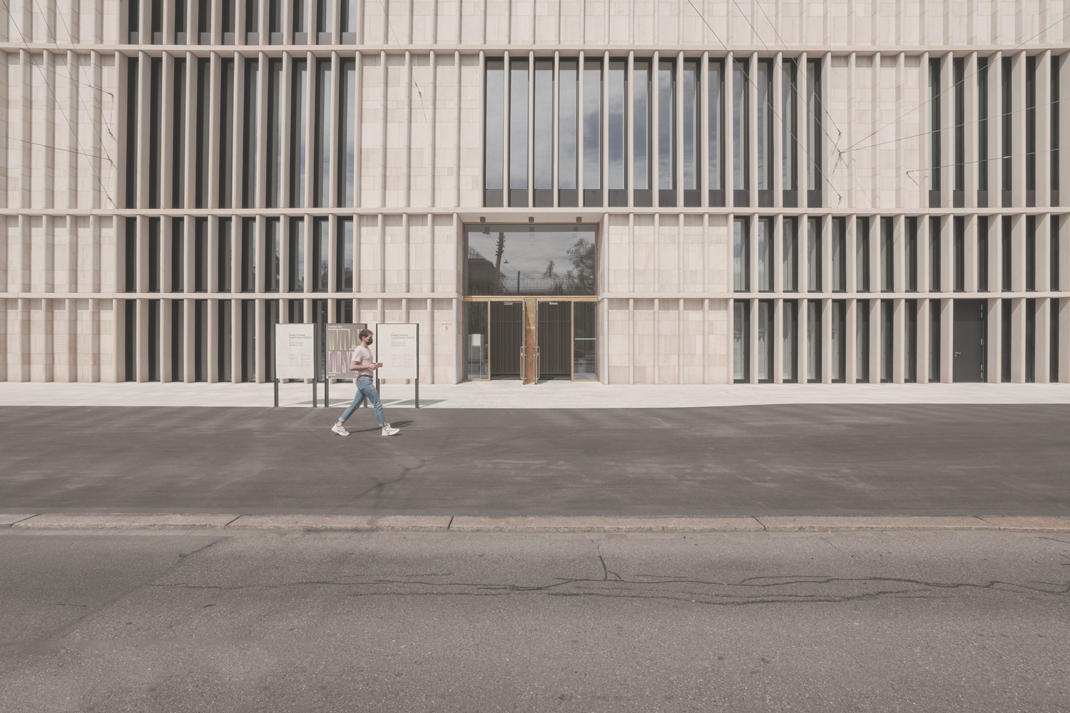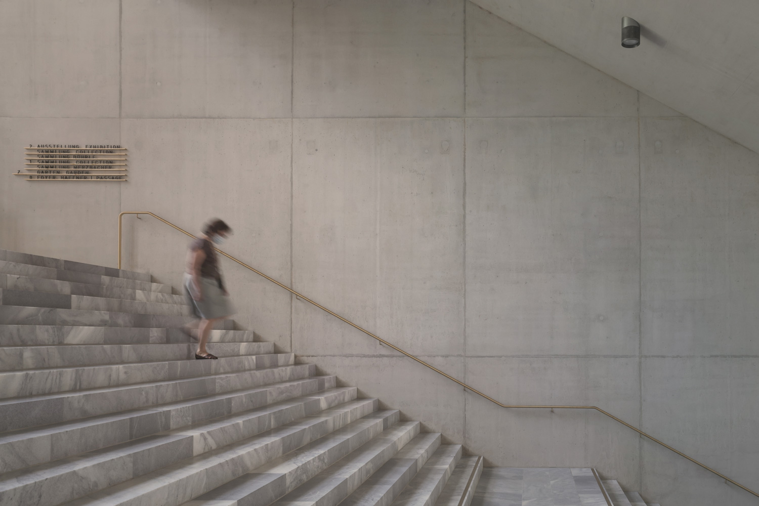 the architectural film about the extension of the kunsthaus zurich, designed by david chipperfield architects berlin, shows the journey of discovery of the first visitors to the new building. the architecture is shown in its pure essence, only in the interplay with the bells of the installation "the sense of things" by choreographer william forsythe. the contemplative atmosphere paired with the curiosity of the people form the basis of the story the film tells - the interplay of urbanity and architecture, life and silence, underpinned by the smouldering sounds of the different bells and the urban hustle and bustle in the centre of zurich.
